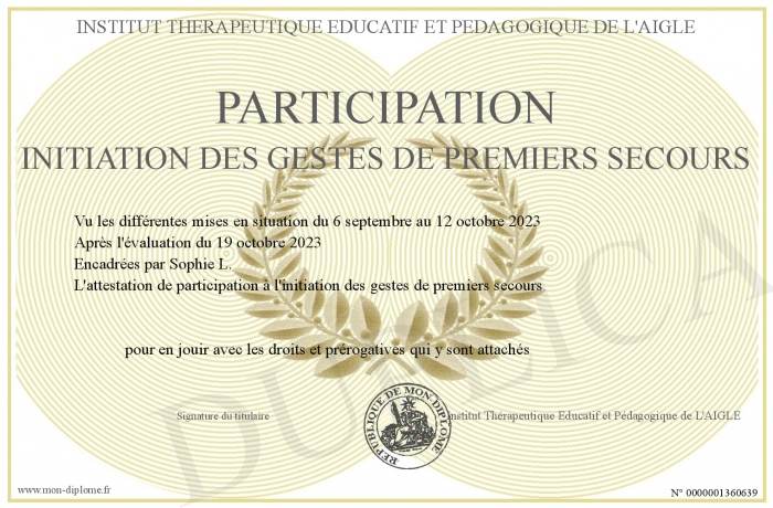 Envoyez par email votre Participation Initiation des gestes de premiers secours personalisé