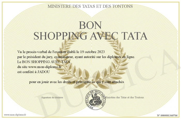 Envoyez par email votre BON SHOPPING AVEC TATA personalisé