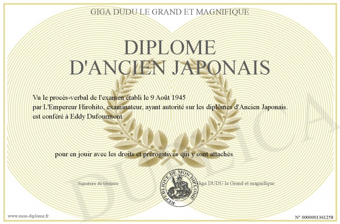 Envoyez par email votre Diplôme d'Ancien Japonais personalisé