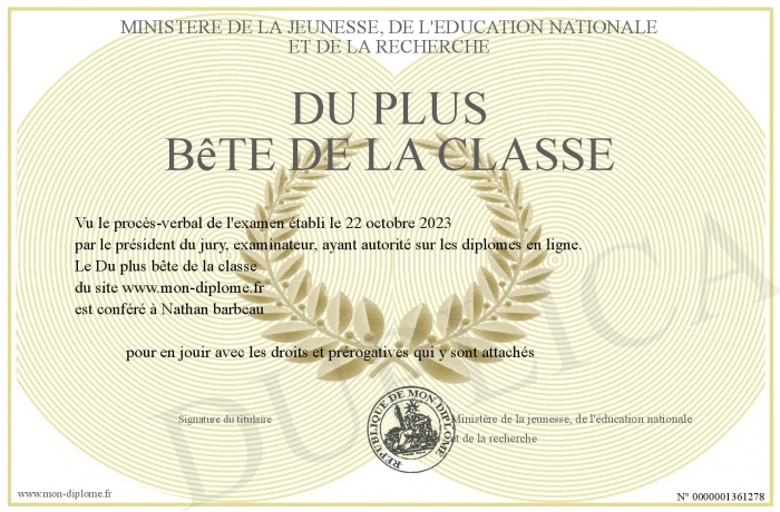 Envoyez par email votre Du plus bête de la classe personalisé