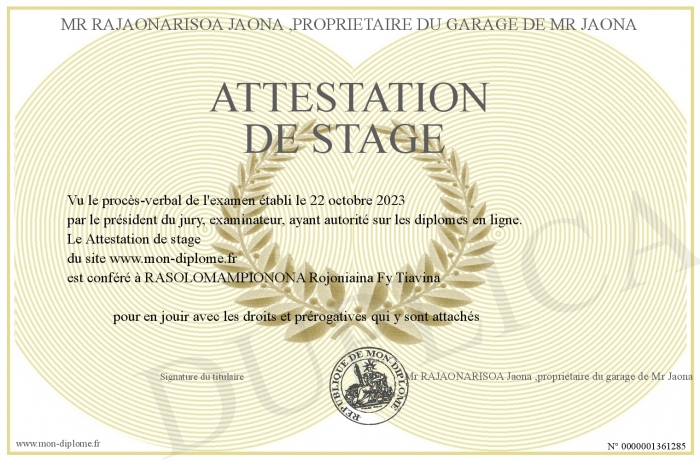 envoyé par le Mr RAJAONARISOA Jaona ,propriétaire du garage de Mr Jaona !