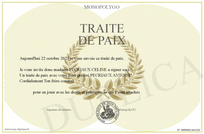Envoyez par email votre traité de paix personalisé
