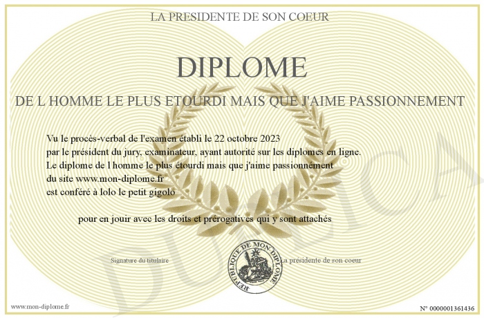 Envoyez par email votre diplôme de l homme le plus étourdi mais que j'aime passionnément personalisé