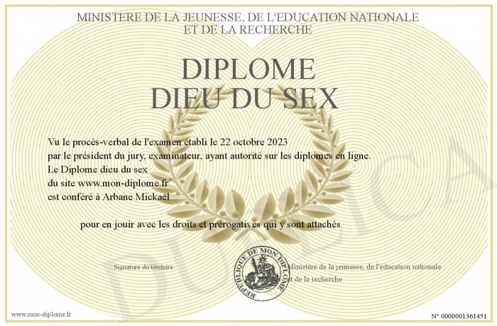 Envoyez par email votre Diplome dieu du sex personalisé