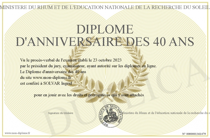 Envoyez par email votre Diplôme d'anniversaire des 40 ans personalisé