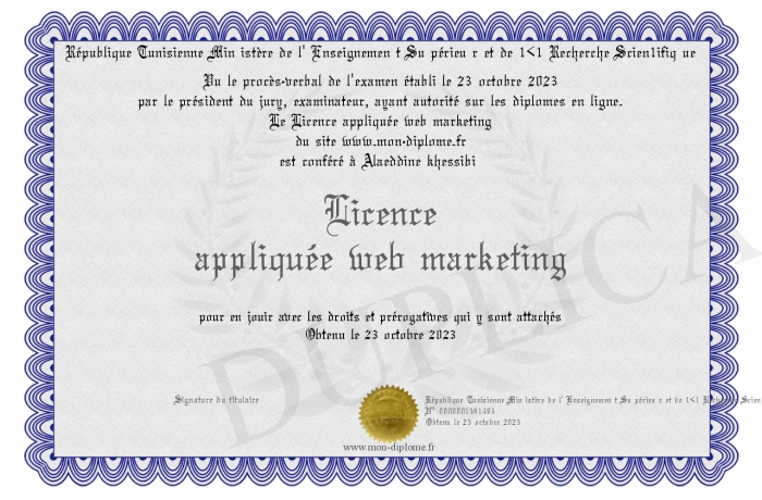 Envoyez par email votre Licence appliquée web marketing personalisé