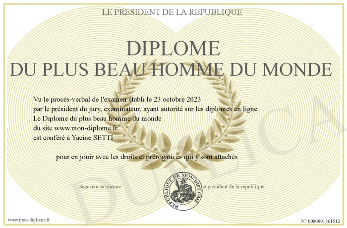 Envoyez par email votre Diplôme du plus beau homme du monde personalisé