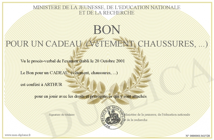 Envoyez par email votre Bon pour un CADEAU (vêtement, chaussures, ...) personalisé