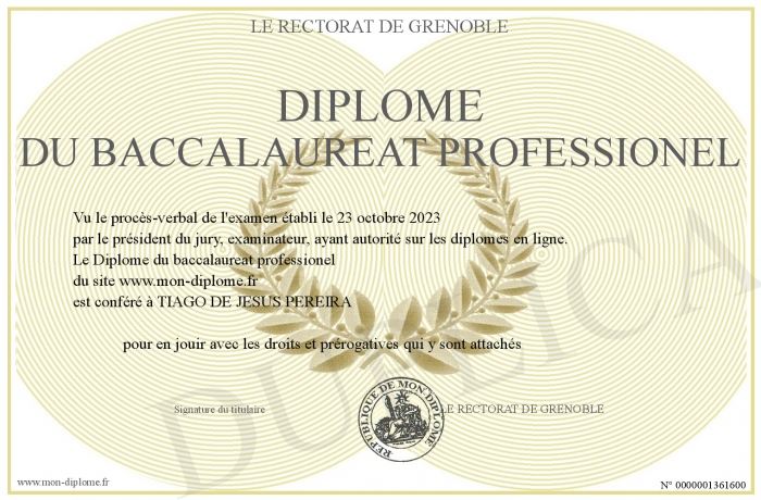 Envoyez par email votre Diplôme du baccalaureat professionel personalisé