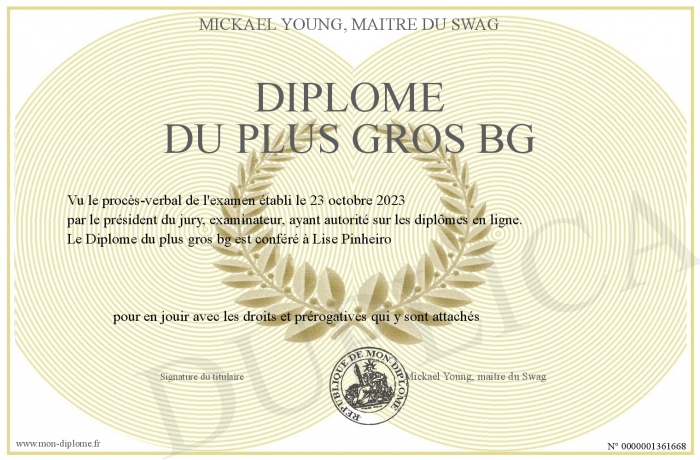 Envoyez par email votre Diplôme du plus gros bg personalisé