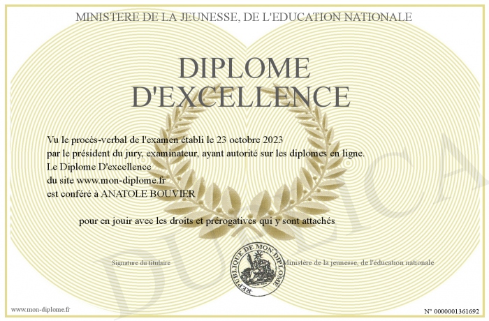 Envoyez par email votre Diplôme D'excellence personalisé