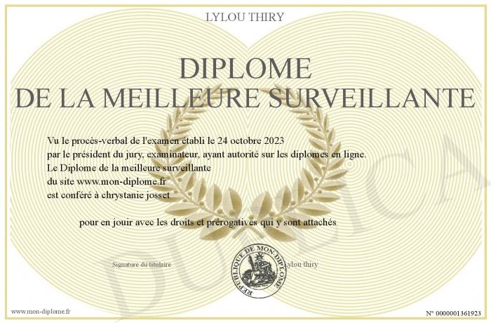 Envoyez par email votre Diplôme de la meilleure surveillante personalisé