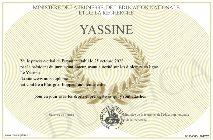 Envoyez par email votre Yassine personalisé