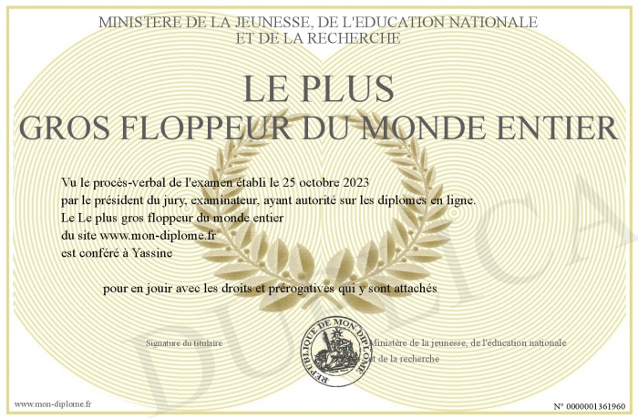 Envoyez par email votre Le plus gros floppeur du monde entier personalisé