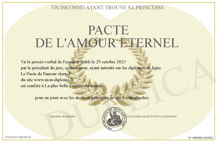 Envoyez par email votre Pacte de l'amour éternel personalisé
