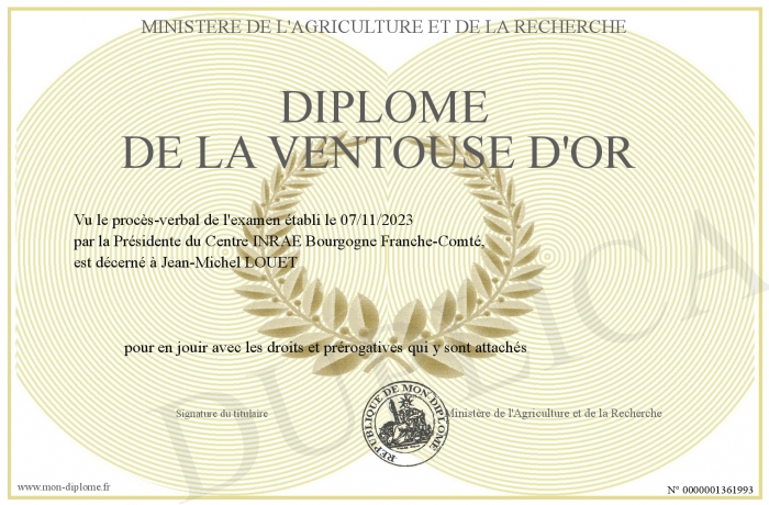 Envoyez par email votre DIPLOME DE LA VENTOUSE D'OR personalisé