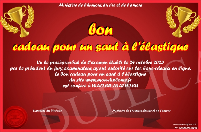 Envoyez par email votre bon cadeau pour un saut à l'élastique personalisé