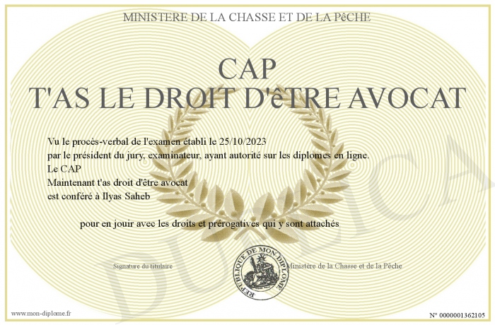 Envoyez par email votre CAP t'as le droit d'être avocat personalisé