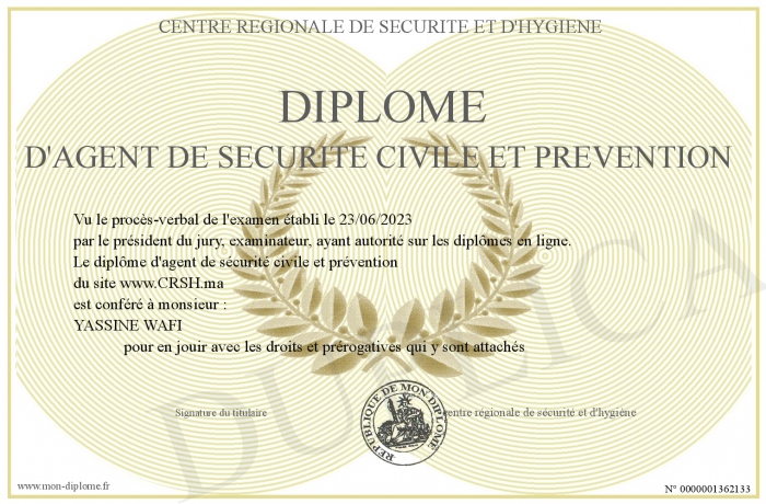 Envoyez par email votre Diplôme d'agent de sécurité civile et prévention personalisé