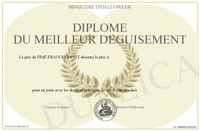 Envoyez par email votre Diplôme du meilleur déguisement personalisé