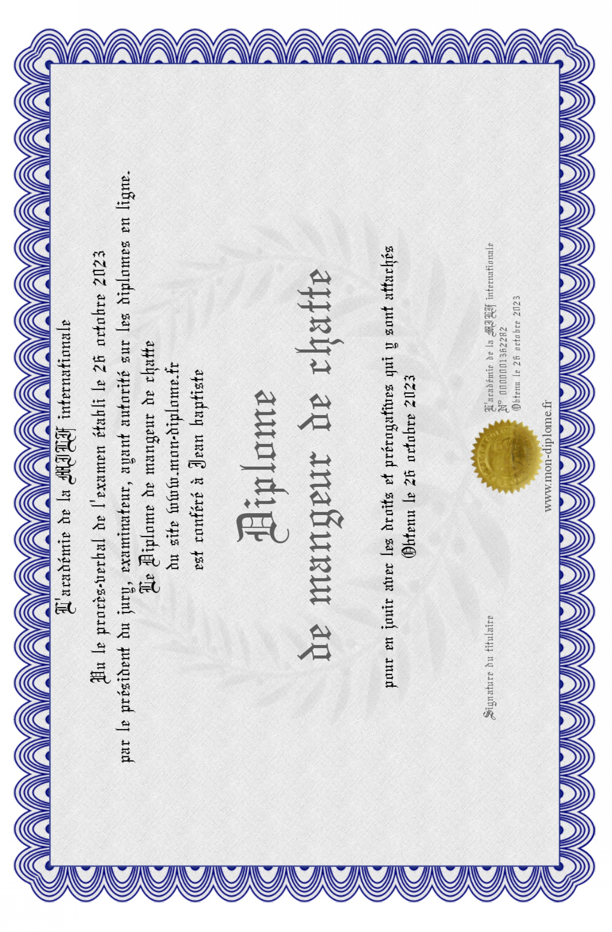 Envoyez par email votre Diplôme de mangeur de chatte personalisé