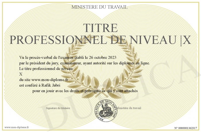Envoyez par email votre titre professionnel de niveau |X personalisé