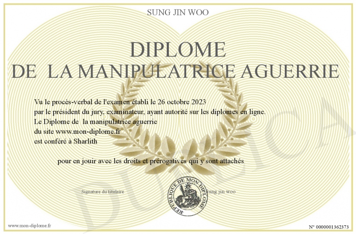 Envoyez par email votre Diplôme de la manipulatrice aguerrie personalisé