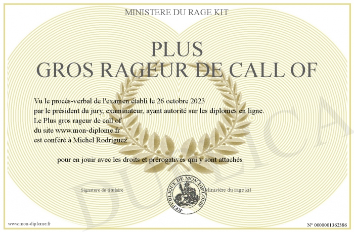 Envoyez par email votre Plus gros rageur de call of personalisé