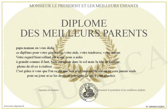 Envoyez par email votre Diplôme des meilleurs parents personalisé