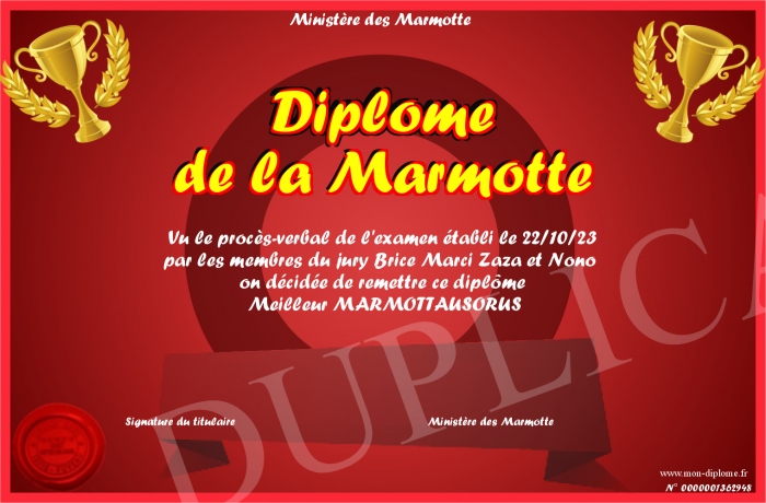 Envoyez par email votre Diplôme de la Marmotte personalisé