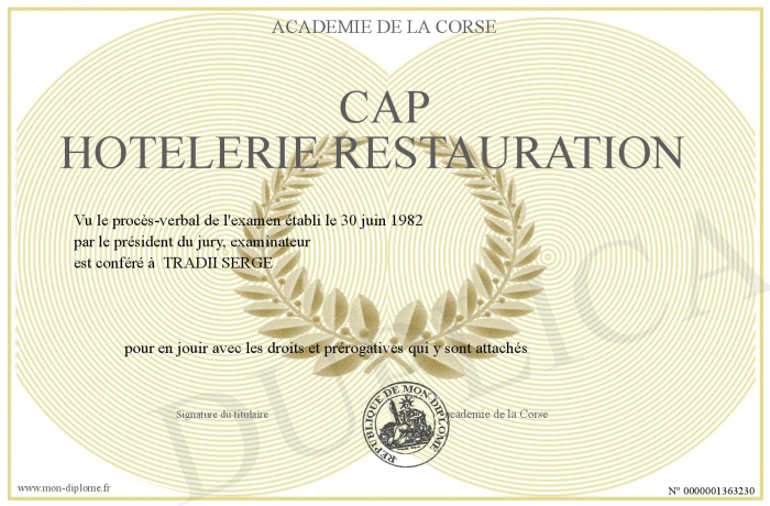 Envoyez par email votre CAP Hotelerie restauration personalisé