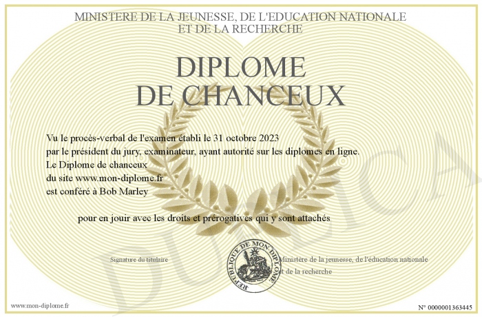 Envoyez par email votre Diplôme de chanceux personalisé