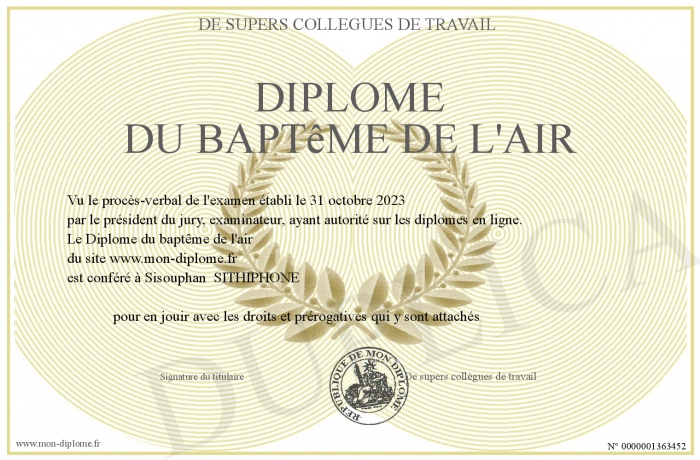 Envoyez par email votre Diplôme du baptême de l'air personalisé