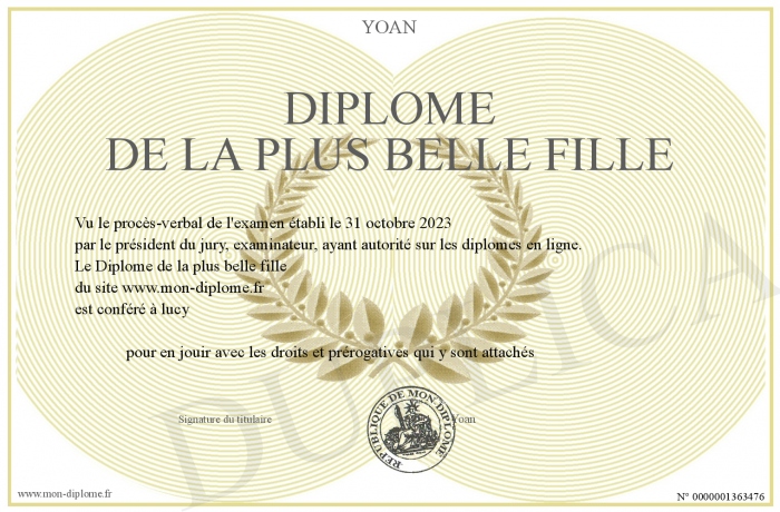 • Diplôme de la plus belle fille