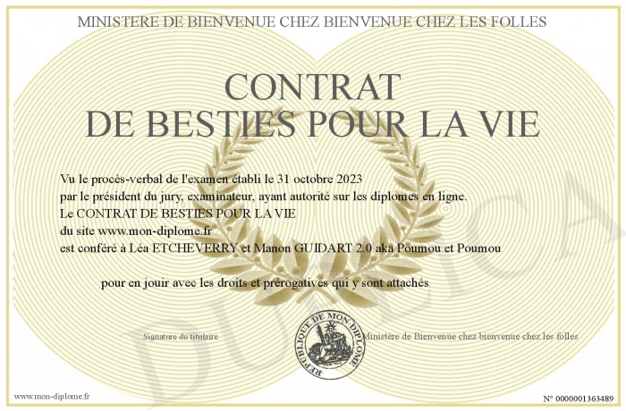Envoyez par email votre CONTRAT DE BESTIES POUR LA VIE personalisé