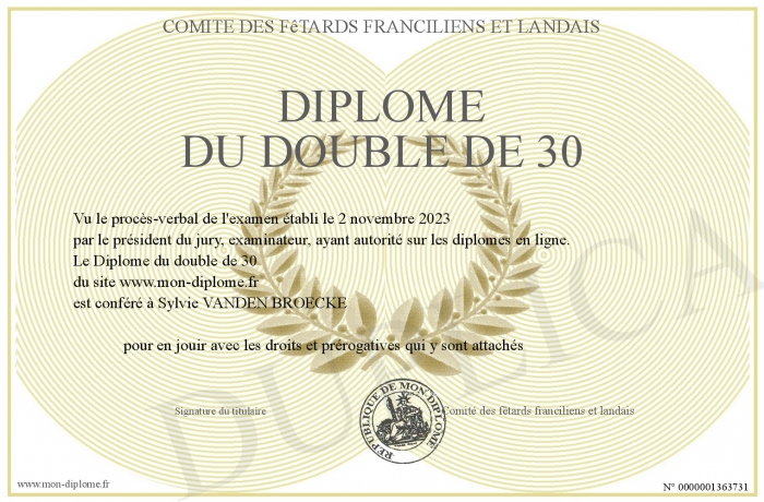 Envoyez par email votre Diplôme du double de 30 personalisé