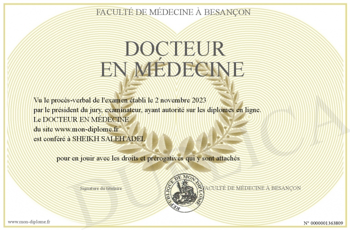 Envoyez par email votre DOCTEUR EN MÉDECINE personalisé