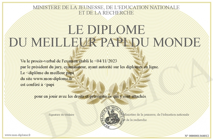 Envoyez par email votre le diplôme du meilleur papi du monde personalisé