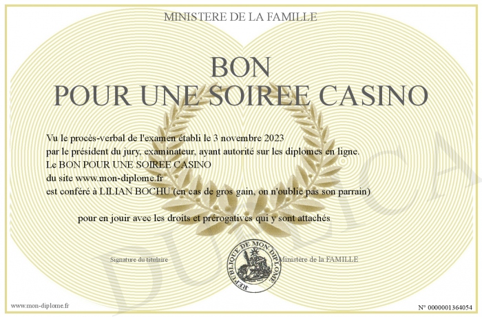 Envoyez par email votre BON POUR UNE SOIREE CASINO personalisé