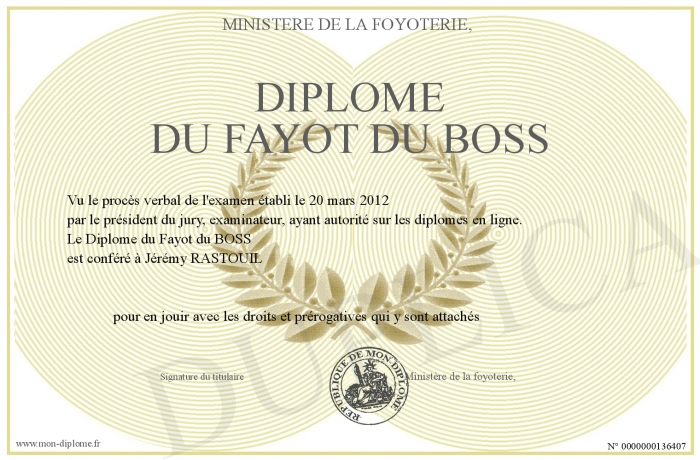 Envoyez par email votre Diplôme du Fayot du BOSS personalisé
