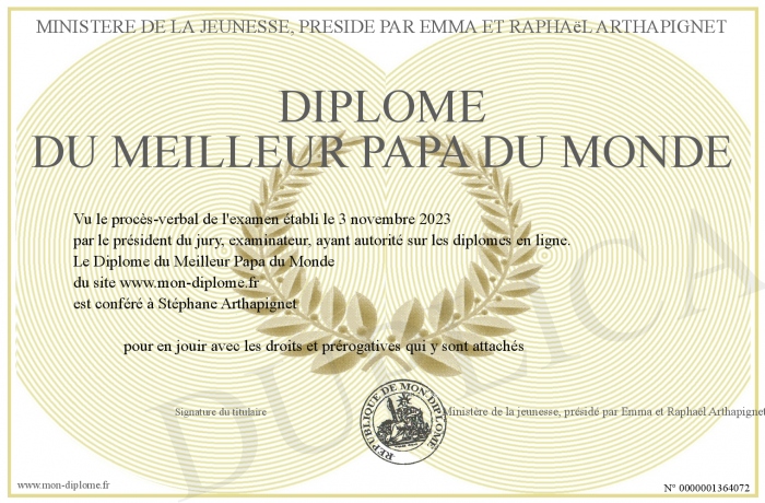 Envoyez par email votre Diplôme du Meilleur Papa du Monde personalisé