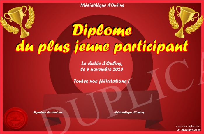 Envoyez par email votre Diplôme du plus jeune participant personalisé