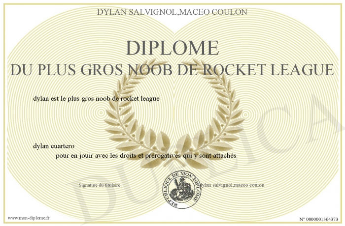 Envoyez par email votre diplome du plus gros noob de rocket league personalisé