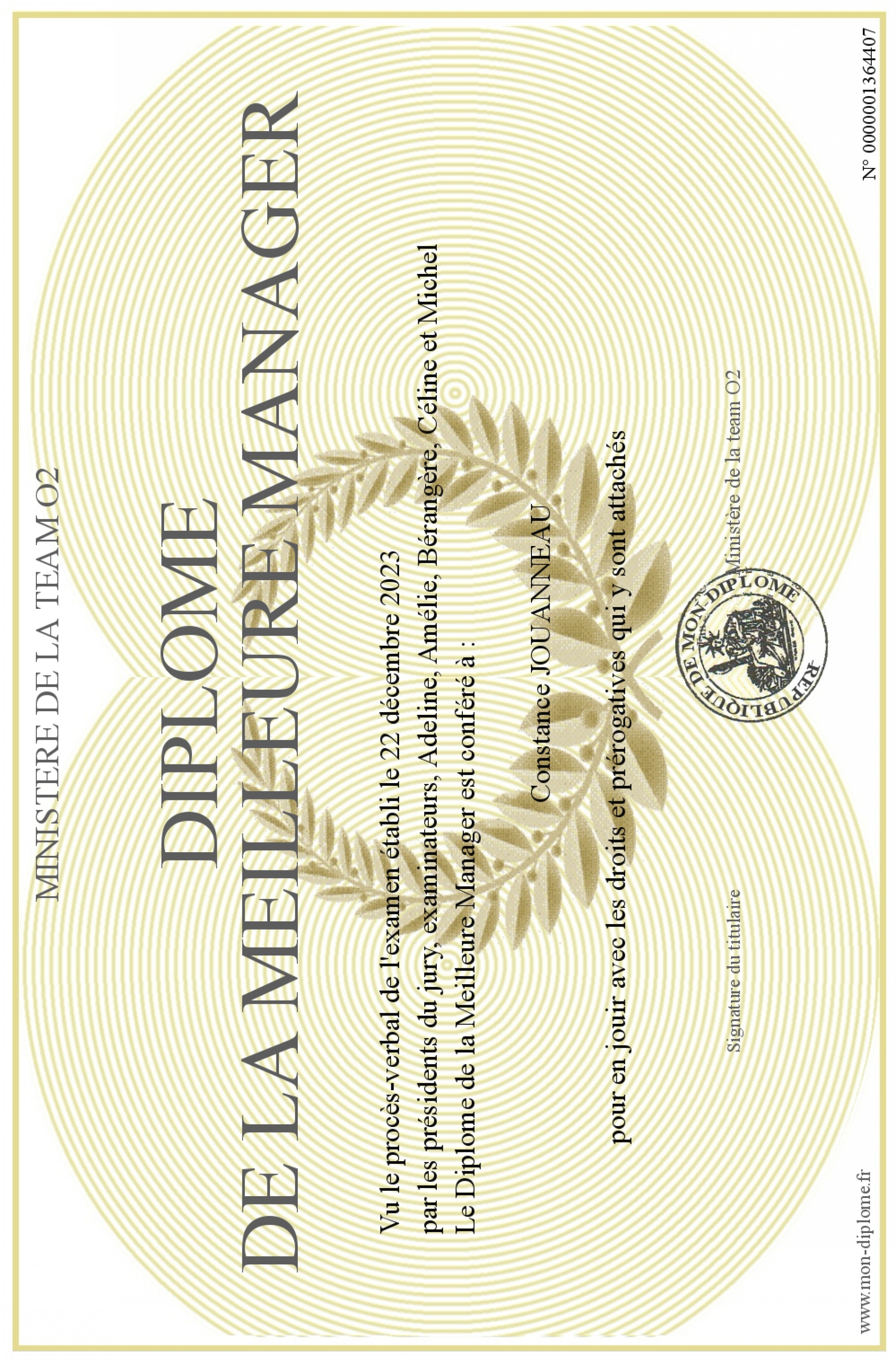 Envoyez par email votre Diplôme de la Meilleure Manager personalisé
