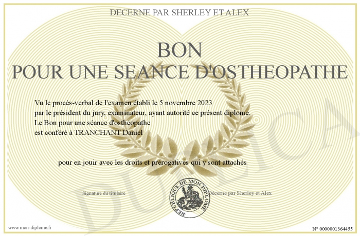 Envoyez par email votre Bon pour une séance d'osthéopathe personalisé
