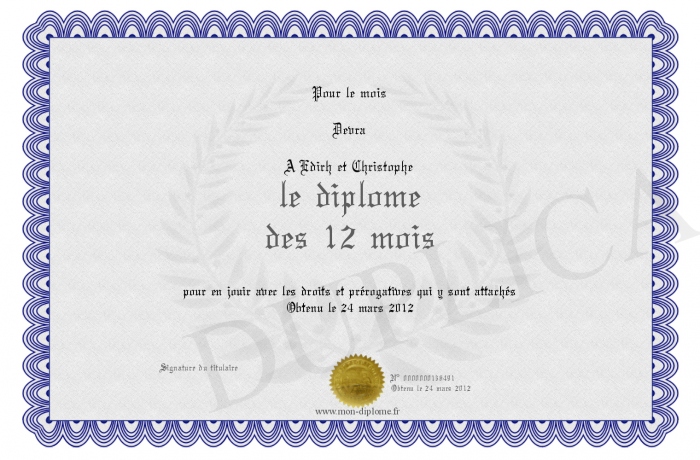 Envoyez par email votre le diplome des 12 mois personalisé