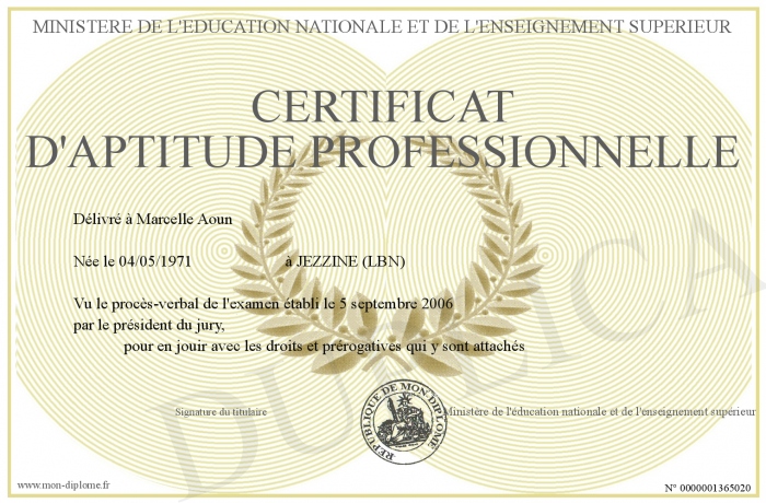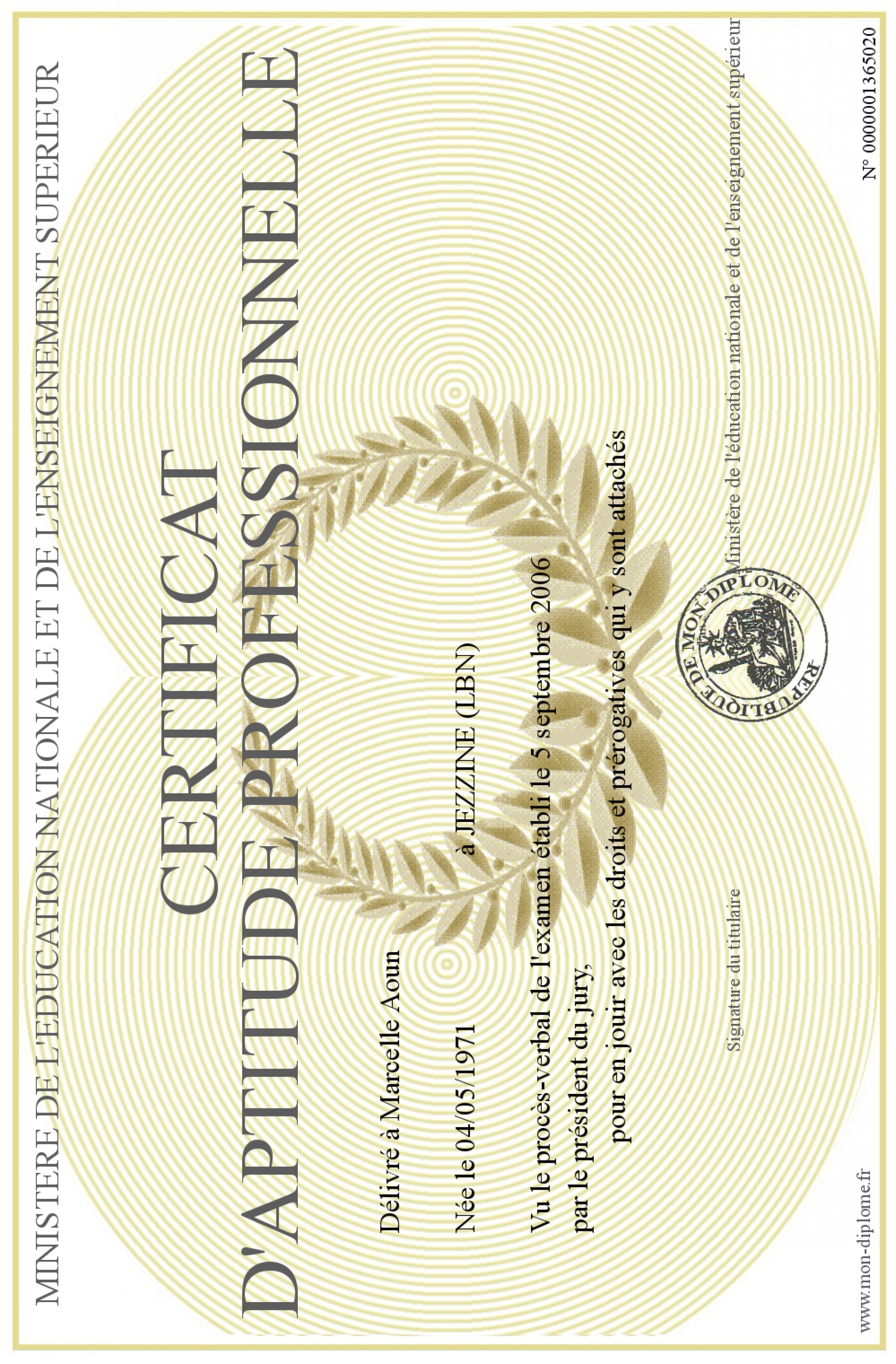 Envoyez par email votre Certificat d'aptitude professionnelle personalisé