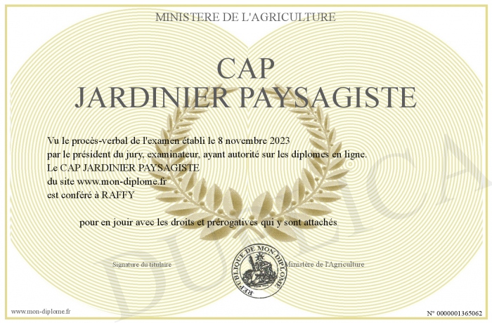 Envoyez par email votre CAP JARDINIER PAYSAGISTE personalisé