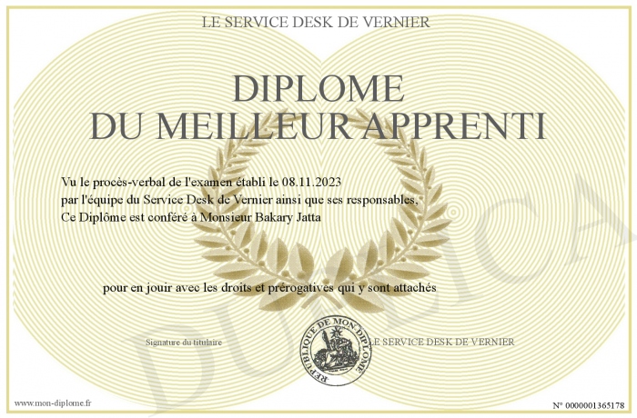 Envoyez par email votre Diplôme du meilleur apprenti personalisé