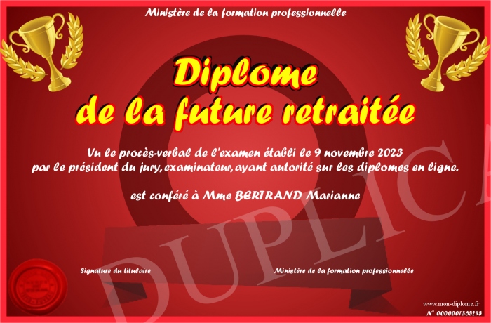 Envoyez par email votre Diplôme de la future retraitée personalisé